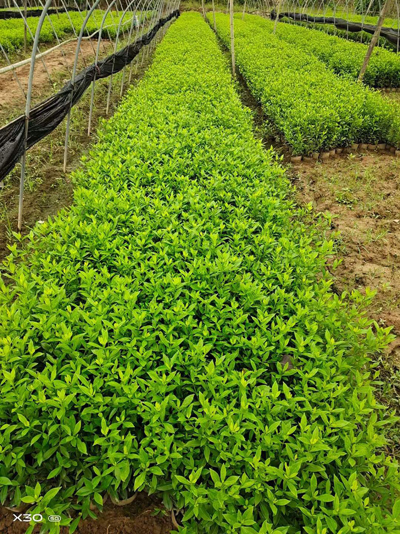 梔子花四季常綠,長江以南常見,黃河以南引種試驗后栽植,花色潔白,氣味香濃,是優質的綠化植物。我們常規的高度栽30~50公分,以營養缽栽植為主,每平米栽植數量約36棵,即6排6行平均栽植。